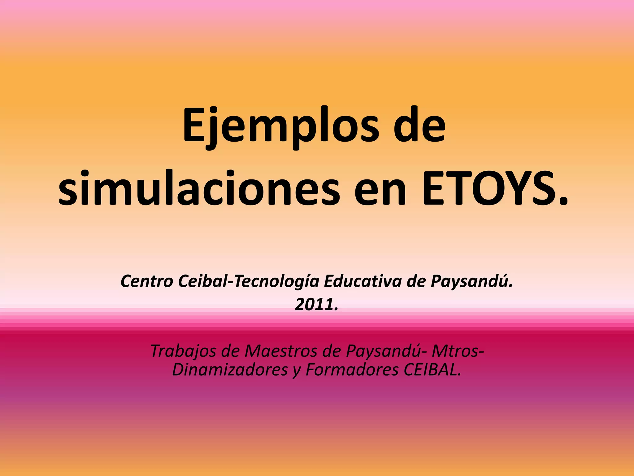 Las simulaciones en ETOYS son herramientas educativas que permiten modelar sistemas complejos. El Centro Ceibal de Paysandú realizó varios proyectos educativos utilizando esta tecnología en 2011 con maestros dinamizadores y formadores para enriquecer el aprendizaje.