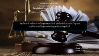 Este documento describe el procedimiento abreviado para la audiencia de presentación por detención policial. En la audiencia, el Ministerio Público debe probar que el aprehendido fue detenido en flagrancia y solicitar una medida de coerción, mientras que la defensa puede pedir la apertura de una investigación si la detención fue ilegal. Luego, el juez decidirá si el imputado ingresa a prisión o es puesto en libertad condicional.