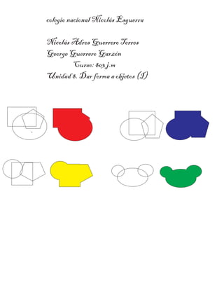 El documento habla sobre un estudiante llamado Nicolás Adres Guerrero Torres que asiste al colegio nacional Nicolás Esguerra. El estudiante está en el curso 803 de la jornada de la mañana y la unidad 8 trata sobre dar forma a objetos e intersectarlos.