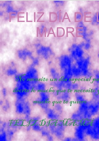 Este breve documento felicita a una madre por su día y expresa lo mucho que la persona necesita y quiere a su madre, aunque no necesita un día especial para decírselo.