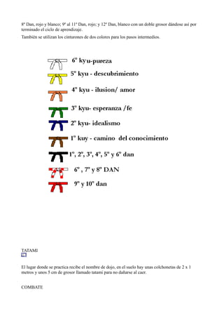 El judo es un arte marcial japonés fundado por Jigoro Kano en 1882. Combina técnicas de lucha de varias escuelas de jujitsu japonesas. Se incluyó por primera vez en los Juegos Olímpicos de 1964. Los competidores se dividen en categorías de peso y el objetivo es derribar al oponente aplicando la fuerza de este. El judo destaca la técnica sobre la fuerza y enseña valores como el respeto y la humildad.