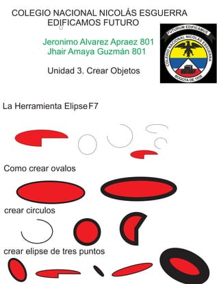 El documento describe diferentes herramientas para crear formas geométricas en un programa de dibujo como elipses, círculos, polígonos regulares y cuadrículas utilizando las herramientas Elipse, Polígono y otras funciones.