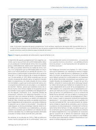 Este documento describe el síndrome de Bartter, una enfermedad renal caracterizada por hipopotasemia e hipercalciuria. Se discuten las teorías fisiopatológicas iniciales y cómo los estudios de biología molecular en la década de 1990 identificaron mutaciones en genes que codifican transportadores iónicos en la nefrona como la causa subyacente. El síndrome de Bartter ahora se entiende como un trastorno heterogéneo causado por defectos en la reabsorción de sodio, potasio y cloro en la rama ascend