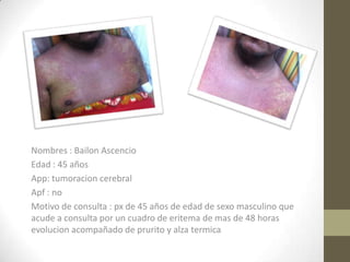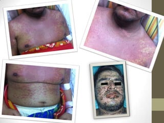 El síndrome de Stevens-Johnson es una enfermedad grave de la piel y las mucosas causada por una reacción inmune, a menudo provocada por infecciones o medicamentos. Los síntomas incluyen una erupción cutánea dolorosa con ampollas y úlceras en la boca, ojos y genitales. El tratamiento se enfoca en detener la causa subyacente, prevenir infecciones y aliviar los síntomas con medicamentos y cuidados intensivos en casos graves.