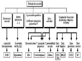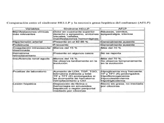 El documento proporciona información sobre el síndrome HELLP, una complicación grave de la preeclampsia caracterizada por hemolisis, elevación de enzimas hepáticas y trombocitopenia. Describe las manifestaciones clínicas, criterios de diagnóstico, clasificación, objetivos del tratamiento como control de la presión arterial y la coagulación, y complicaciones como hemorragia intracraneal e insuficiencia cardiopulmonar. El tratamiento incluye magnesio para prevenir convulsiones y medicamentos antihipertensivos.