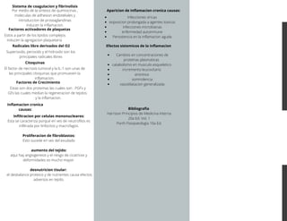 La inflamación es una respuesta protectora de los tejidos vascularizados a una lesión y puede ser aguda o crónica. La inflamación aguda implica cambios como vasodilatación, aumento de permeabilidad y exudación de leucocitos, mientras que la inflamación crónica se caracteriza por la infiltración de células mononucleares y proliferación de fibroblastos. Factores como citoquinas, aminas vasoactivas y el sistema de complemento juegan roles clave en la mediación y regulación del proceso inflamatorio.