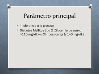 La OMS propuso criterios iniciales para el diagnóstico del síndrome metabólico en 1998 que incluían intolerancia a la glucosa, hipertensión, triglicéridos elevados, colesterol HDL bajo y obesidad abdominal como parámetros principales. La Asociación Americana de Endocrinólogos Clínicos amplió los criterios en 2001 para incluir resistencia a la insulina, acantosis nigricans y otros factores de riesgo cardiovascular.