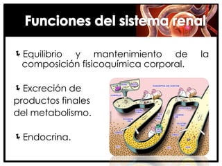Este documento describe las causas y manifestaciones clínicas del síndrome nefrótico, así como su diagnóstico y tratamiento general. El síndrome nefrótico se caracteriza por proteinuria masiva, hipoalbuminemia e hinchazón y puede deberse a varias enfermedades glomerulares primarias o secundarias. Su diagnóstico incluye exámenes de orina y sangre, y una biopsia renal es necesaria para determinar el tratamiento y pronóstico específicos. El tratamiento general se enfoca en controlar la pres