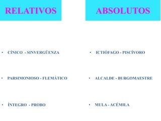 Este documento presenta diferentes tipos de sinónimos y ofrece ejemplos de cada uno. Explica que los sinónimos pueden pertenecer a más de un tipo e incluye ejercicios prácticos de identificación y sustitución de sinónimos.