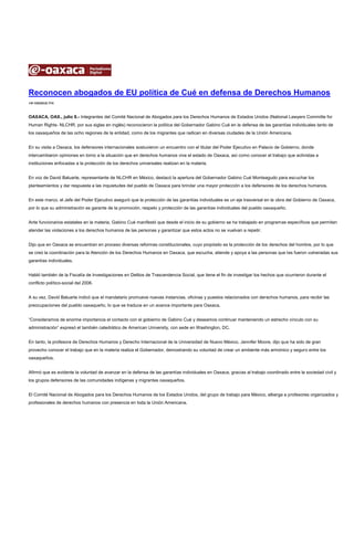 1) Se reconoció la política del gobernador Gabino Cué en defensa de los derechos humanos por parte de abogados estadounidenses.