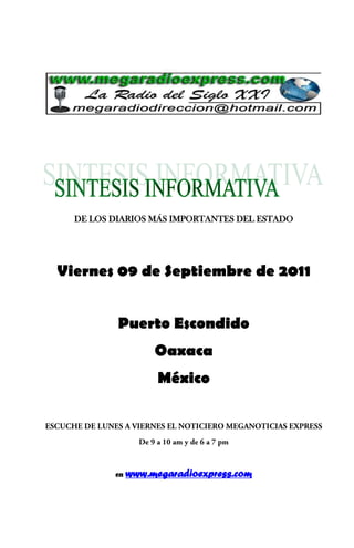 El gobernador Gabino Cué realizará una Audiencia Pública en el Palacio de Gobierno para escuchar las demandas y necesidades de los ciudadanos. Se instaló un Consejo Estatal para implementar el expediente clínico electrónico en el sector salud. El gobierno promueve acciones contra el cambio climático como proteger los bosques y aprovechar la energía eólica.