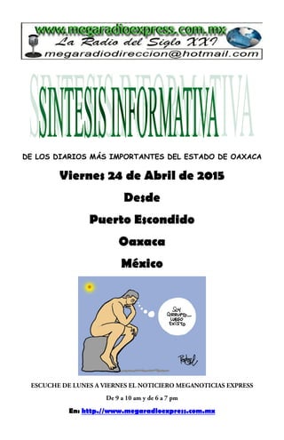 El documento resume las acciones de protesta de la Sección 22 del Sindicato Nacional de Trabajadores de la Educación en Oaxaca, México contra las elecciones del 7 de junio. Los maestros vandalizaron las oficinas del Partido Revolucionario Institucional, retiraron propaganda electoral y advirtieron que boicotearán las elecciones. También realizaron protestas similares en las oficinas del gobierno estatal de educación en Guerrero en oposición a las reformas educativas y por la desaparición de los 43 normalistas de Ayot