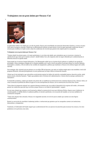 El gobernador Gabino Cué señaló que Oaxaca está consolidando una transición democrática histórica y avanza hacia el progreso sostenido. Su administración ha enfocado recursos en programas sociales que ahora atienden a 1.2 millones de personas previamente desatendidas, y ha restablecido importantes obras de infraestructura como carreteras y el abastecimiento de agua. Benjamín Robles destacó que el trabajo por Oaxaca y la lealtad al gobernador Cué deberán distinguir a los candidatos al senado por