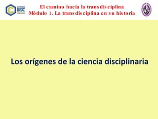 El documento trata sobre la transdisciplina. Explica los orígenes de la ciencia disciplinaria y cómo ha cambiado la epistemología con rupturas en el siglo XX. También define la diferencia entre disciplina, multidisciplina, interdisciplina y transdisciplina, siendo esta última un conocimiento que va más allá de las disciplinas a través de la noción de niveles de realidad, lógica del tercero incluido y complejidad según la metodología de Nicolescu. Los temas centrales son la ciencia disciplinaria y la metod