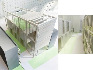 El documento discute la importancia de la creatividad y ponerla al servicio de la sociedad. Propone ver la creatividad no solo como un elemento objetivo, sino considerando factores biológicos, sociológicos, culturales y ambientales. También describe varios proyectos de diseño de mobiliario urbano y viviendas sociales que buscan mejorar las ciudades introduciendo más naturaleza y fomentando una mayor interacción social.