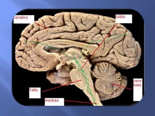 El sistema reticular se extiende desde el diencéfalo hasta la médula espinal y se caracteriza por fibras nerviosas sin agrupación definida que forman un retículo blanco sobre fondo gris. El sistema reticular ascendente transmite información a la corteza cerebral y controla el nivel de conciencia. El sistema reticular activador regula los ciclos de vigilia y sueño a través de neuronas que disparan cíclicamente y se conectan a varias estructuras anatómicas como la corteza cerebral, el tálamo, los centros resp