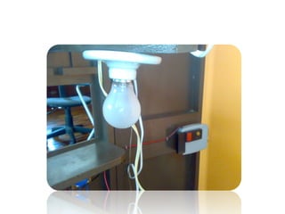 Este documento describe un proyecto para controlar dispositivos eléctricos domésticos como cerraduras, lámparas y tomacorrientes mediante comandos Bluetooth enviados desde un celular. El sistema utiliza un módulo Bluetooth conectado a un microcontrolador para recibir los comandos del celular y activar los dispositivos correspondientes. El proyecto busca facilitar el manejo de estos dispositivos para personas con discapacidad.