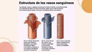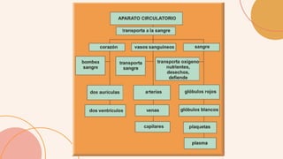 El documento describe los principales componentes y funciones del sistema circulatorio humano. Explica que el corazón es un órgano hueco ubicado en el tórax que bombea la sangre a través de los vasos sanguíneos. Describe que la sangre se compone de plasma y tres tipos de células que cumplen funciones como transportar oxígeno y nutrientes, y recoger desechos. También habla brevemente del sistema linfático y su papel en regular los fluidos del cuerpo y filtrar patógenos.