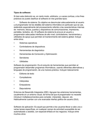 Un sistema de cómputo es un conjunto de elementos como usuarios, hardware, software y datos que interactúan para procesar y almacenar información. El hardware son los componentes físicos como el procesador, mientras que el software incluye programas y aplicaciones. Dentro del software se encuentran los sistemas operativos, programas de aplicación y programas de usuario.