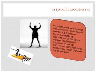 Este documento habla sobre la importancia de los sistemas de recompensas para mantener y promover el éxito organizacional. Explica diferentes tipos de sistemas de recompensas y sus efectos sobre los individuos y las organizaciones. También describe varios modelos de sistemas de recompensas como el modelo de equidad de John Stacy Adams y recomienda diseñar sistemas de premios que apoyen la estrategia de la organización.