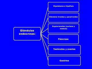 El documento proporciona una introducción general al sistema endocrino. Explica que las glándulas endocrinas secretan hormonas directamente en la sangre para regular funciones como el crecimiento, desarrollo, metabolismo y comportamiento. Describe las principales glándulas endocrinas, las hormonas que producen y sus funciones. También explica brevemente cómo se regulan y transportan las hormonas, y los posibles trastornos que pueden ocurrir cuando el sistema endocrino no funciona correctamente.