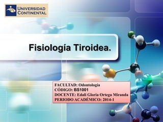 El documento resume los principales conceptos sobre la fisiología tiroidea, incluyendo la síntesis de hormonas tiroideas por la glándula tiroides, sus funciones y efectos, y alteraciones como el hipertiroidismo y hipotiroidismo. Describe los mecanismos celulares de la glándula tiroides para el transporte de yodo y la formación de hormonas, así como los efectos fisiológicos de dichas hormonas en el metabolismo. También explica las causas y síntomas del hipertiroidismo y hipotiroid