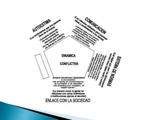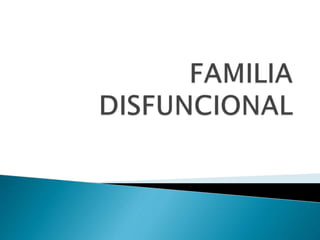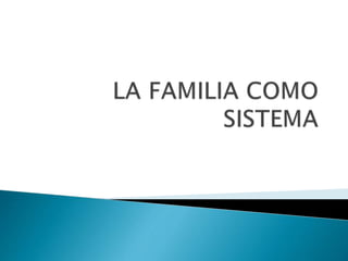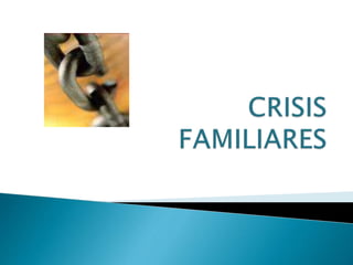 El documento describe la familia como un sistema dinámico compuesto por elementos interrelacionados que interactúan para lograr un objetivo común. Explica que una familia es funcional cuando puede adaptarse al cambio y realizar sus funciones de manera flexible, mientras que es disfuncional si no logra adaptarse o cumplir con sus funciones básicas. También analiza los diferentes tipos de crisis familiares y cómo afectan el funcionamiento del sistema familiar.