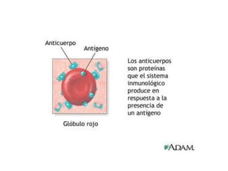 El sistema inmunológico humano protege al cuerpo de enfermedades mediante la producción de anticuerpos que reconocen y combaten a los antigenos extraños. Los anticuerpos son proteínas producidas por los glóbulos blancos llamados linfocitos B que circulan en la sangre y se unen a los antigenos específicos como bacterias y virus para neutralizarlos o marcarlos para su destrucción.