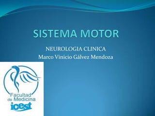El documento describe la organización jerárquica del sistema nervioso motor, desde las motoneuronas en la médula espinal y troncoencefálico hasta la corteza motora. Explica que las motoneuronas envían señales a los músculos a través de los nervios raquídeos y forman unidades motoras con las fibras musculares. También describe el arco reflejo como una respuesta motora mediada por interneuronas en la médula espinal.