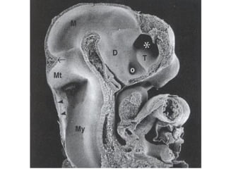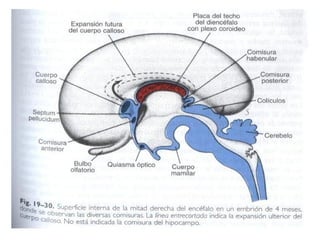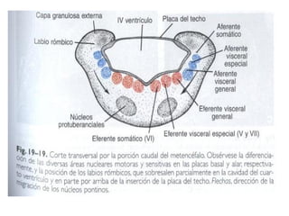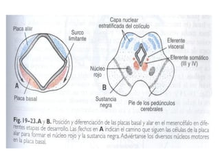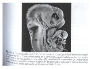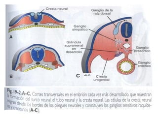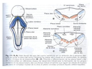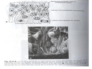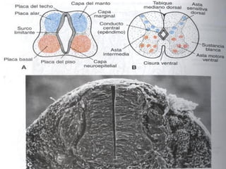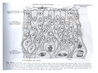 - El tubo neural se divide en dos secciones: la porción cefálica ancha que forma el encéfalo, y la porción caudal larga que forma la médula espinal.