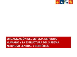 El documento describe la organización del sistema nervioso humano, incluyendo el sistema nervioso central y periférico. El sistema nervioso central consiste en el encéfalo y la médula espinal. El encéfalo se compone del tronco encefálico, diencéfalo, cerebelo y cerebro. Cada una de estas estructuras tiene funciones específicas como la recepción y procesamiento de información sensorial, el control de movimientos y funciones vitales. La médula espinal conduce señales entre el cerebro y el cuerpo