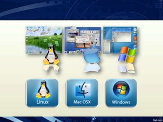 Un sistema operativo es el programa más importante de una computadora que controla y administra todos los recursos del hardware, asigna tiempo de procesamiento a los programas, y proporciona una interfaz para que los usuarios interactúen con la máquina. Los sistemas operativos populares incluyen versiones de Microsoft Windows, Linux y macOS. Cumplen funciones como gestionar el procesador, la memoria, los dispositivos y el almacenamiento de datos para hacer que una computadora funcione de manera eficiente y conveniente.