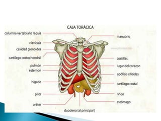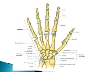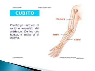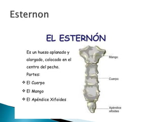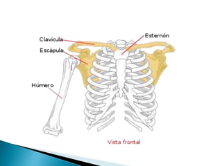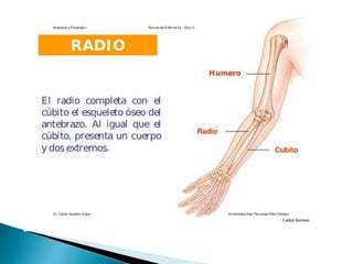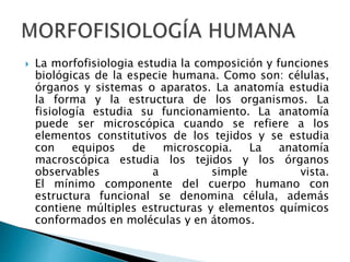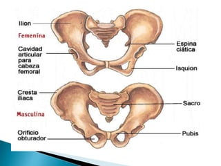 El documento describe la anatomía y función del esqueleto humano. Explica que el esqueleto está compuesto por más de 200 huesos que forman el sistema esquelético, el cual incluye los huesos, cartílagos, tendones y ligamentos. Los huesos sirven para dar soporte al cuerpo, proteger los órganos internos y permitir el movimiento a través de las articulaciones con los músculos.