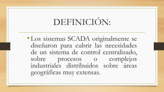 Este documento describe un sistema SCADA implementado en un relleno sanitario en Quito, Ecuador. El sistema SCADA monitorea y controla los niveles, flujos, calidad del agua y aire en las piscinas de lixiviado y plantas de tratamiento. La interfaz principal muestra el estado de todas las piscinas y una piscina de tratamiento específica, así como alarmas. Las interfaces secundarias proporcionan detalles adicionales como conductividad, flujo y niveles para cada piscina.