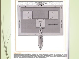 2) El líquido cefalorraquídeo se forma principalmente en los plexos coroideos y se absorbe a través de las vellosidades aracnoideas.