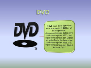 Este documento describe diferentes formatos y herramientas de multimedia como CDs, Video CDs, DivX, MP3, MP4 y reproductores digitales. Explica que los CDs son un soporte digital óptico para almacenar audio, video e imágenes y que formatos como DivX, MP3 y MP4 permiten comprimir y distribuir este contenido digital.