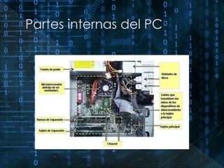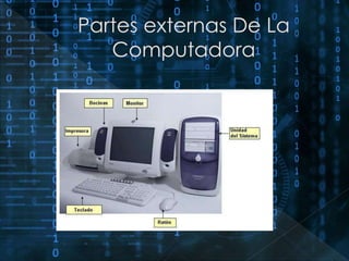 Una computadora realiza entrada, procesamiento, almacenamiento y salida de datos de acuerdo a instrucciones programadas. Se compone de hardware físico que permite la entrada, procesamiento y salida de datos, y software de sistemas operativos y aplicaciones que controlan el hardware y permiten tareas específicas.