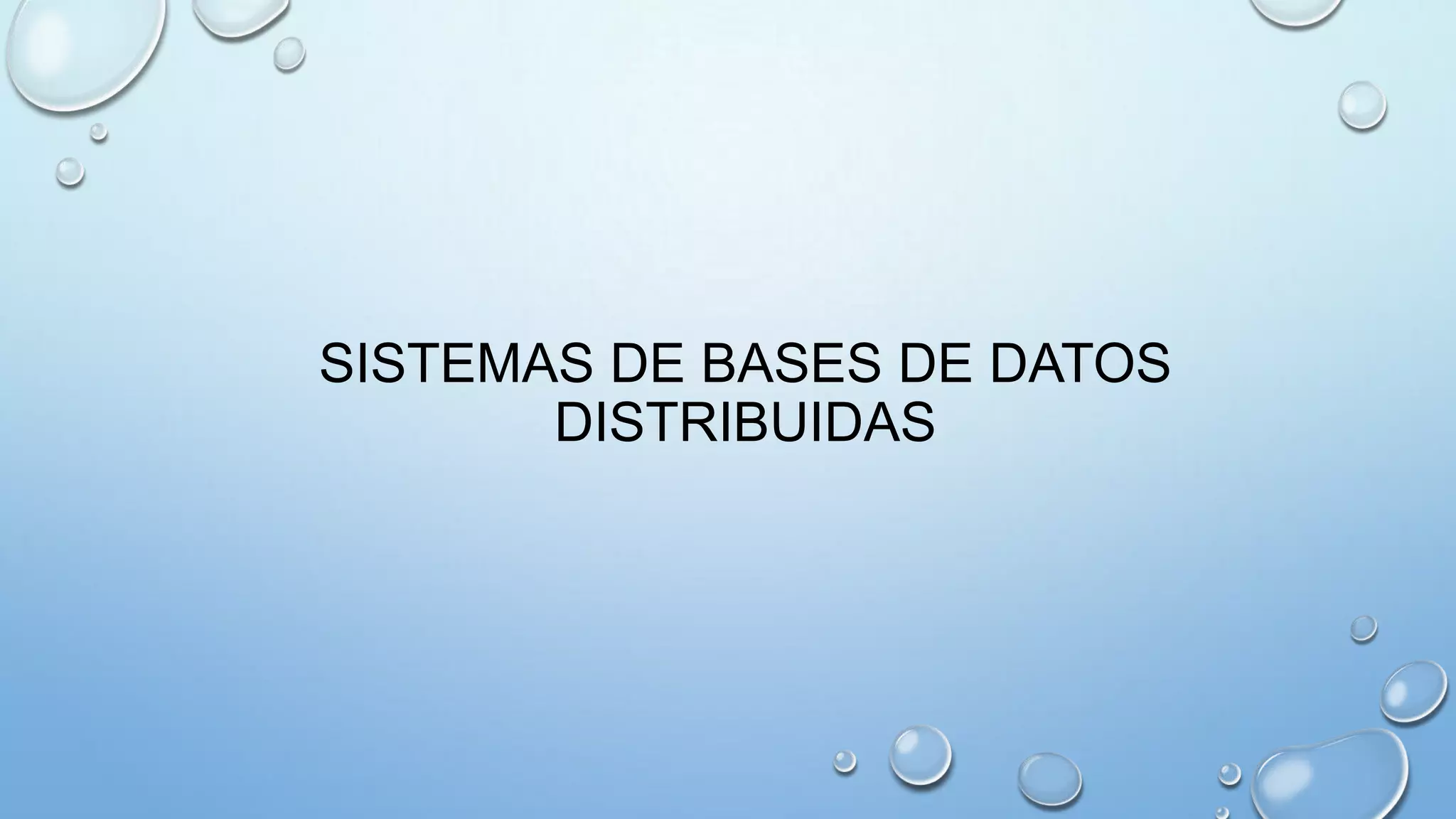 Este documento describe los sistemas de bases de datos distribuidas, incluyendo definiciones, tipos de arquitecturas con múltiples procesadores, aplicaciones y ventajas y desventajas. Una base de datos distribuida consiste en múltiples bases de datos lógicamente relacionadas que se encuentran distribuidas entre diferentes sitios interconectados por una red. Los sistemas de bases de datos distribuidas permiten a los usuarios acceder a los datos en cualquier parte de la red como si estuvieran almacenados localmente.