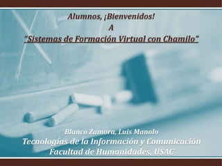Este documento describe Chamilo, un sistema de gestión de aprendizaje abierto (LMS) diseñado para facilitar a los profesores la administración de cursos virtuales. Explica que Chamilo se puede usar para cursos a distancia o como complemento de cursos presenciales, y permite a los estudiantes acceder al contenido del curso a través de Internet. También destaca algunas de las ventajas clave de Chamilo sobre otros LMS, como su interfaz intuitiva, facilidad de instalación y personalización, y que incluye todas las