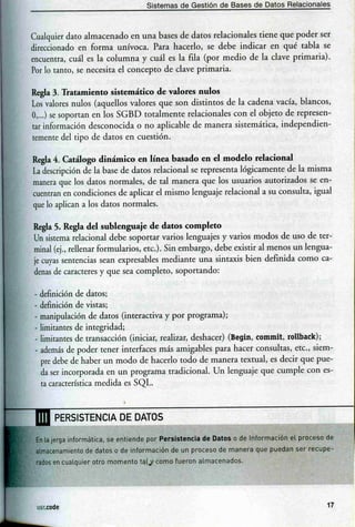 1. Los sistemas de gestión de bases de datos relacionales tienen como objetivo servir de interfaz de comunicación entre una base de datos y las aplicaciones que la utilizan para asegurar el cumplimiento de objetivos como abstraer la información sobre cómo se almacenan los datos, mantener la independencia lógica y física de los datos, y asegurar la integridad y seguridad de los datos.