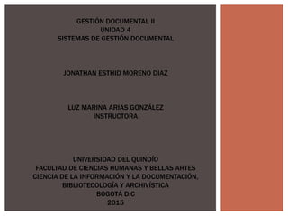 El documento describe los sistemas de gestión documental, incluyendo sus requisitos de implementación, características y generalidades según el Decreto 2609 de 2012. También presenta información sobre un sistema de gestión documental de la empresa Thomas MTI, incluyendo sus criterios y garantías para la integridad de la información.