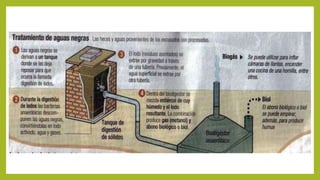 El documento describe varios sistemas ecológicos para captar y aprovechar energía renovable como la energía solar y eólica, así como para el tratamiento y reutilización de aguas pluviales, grises y negras. Se detallan métodos como el uso de paneles solares, ventilación natural, captación de agua de lluvia y sistemas de filtración y reutilización de aguas grises y negras.