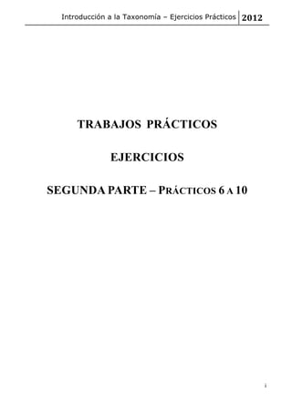 Este documento presenta una serie de ejercicios prácticos sobre sistemática filogenética y taxonomía. Incluye ejercicios sobre reconocimiento de caracteres y estados, construcción de cladogramas mediante argumentación hennigiana, interpretación de cladogramas, optimización de caracteres y uso de programas informáticos para análisis filogenéticos. Los ejercicios se basan en estudios de taxones reales de insectos, utilizando datos morfológicos.