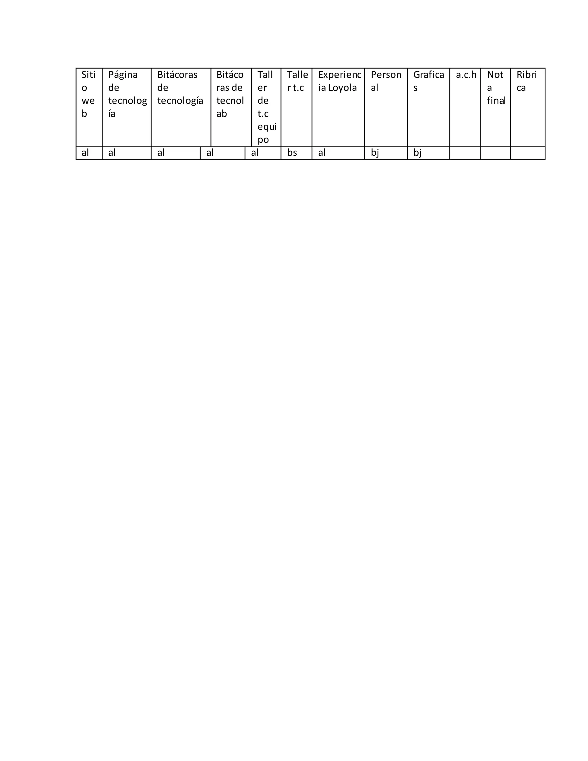 El documento parece ser una página web de tecnología con secciones como bitácoras de tecnología, un taller de tecnología, experiencia laboral y notas finales. No contiene texto legible.