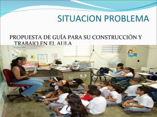 El documento presenta una propuesta de guía para utilizar la estrategia de situación problema en el aula de historia. Explica que la situación problema involucra presentar un problema a los estudiantes para que desarrollen habilidades a través de su resolución. Luego, detalla las etapas para diseñar una situación problema sobre la religión en la época colonial, incluyendo la selección del tema, generación de preguntas, búsqueda de información y discusión para llegar a conclusiones. El objetivo es que los estudiantes comprendan la import