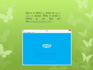 Skype es un software gratuito que permite a millones de personas y empresas realizar llamadas de voz y videollamadas a nivel mundial. Ofrece funciones como videollamadas grupales, mensajería de texto y la opción de iniciar sesión a través de cuentas de Facebook.