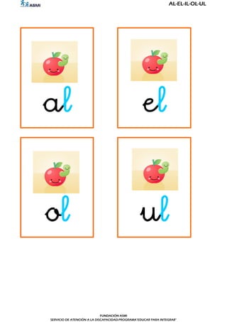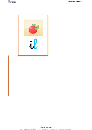 El documento contiene varias páginas con secuencias de letras sin significado aparente junto con el nombre de la Fundación ASMI y su servicio de atención a la discapacidad.