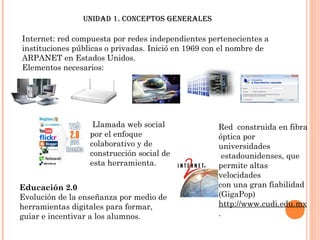 Este documento resume las herramientas de comunicación e interacción en Internet para fines educativos. Explica que Internet comenzó en 1969 como ARPANET y está compuesta de redes independientes. Describe foros, blogs, webquests y portafolios como herramientas asincrónicas y de colaboración que permiten compartir información, realizar discusiones y evaluar el progreso de los estudiantes. Finalmente, revisa cómo generar y publicar presentaciones y videos en línea.