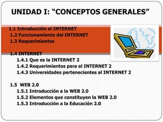 Este documento presenta un resumen de un curso sobre software libre y aplicaciones en educación. El curso cubre conceptos generales sobre internet y la web 2.0, herramientas de comunicación como listas de distribución, foros, chats y blogs. También examina herramientas de colaboración pública como listas de distribución, foros, blogs y wikis. Por último, cubre la generación de contenido visual como PDF, presentaciones de PowerPoint y videos para publicar en la web.