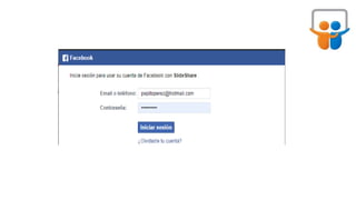 SlideShare es un sitio web que permite a los usuarios subir y compartir documentos en formatos como PDF, Word, OpenOffice y texto, así como algunos formatos de audio y video. Los usuarios pueden registrarse en SlideShare usando una cuenta de LinkedIn o creando una nueva cuenta, y luego cargar sus archivos y publicarlos como públicos, limitados o privados.